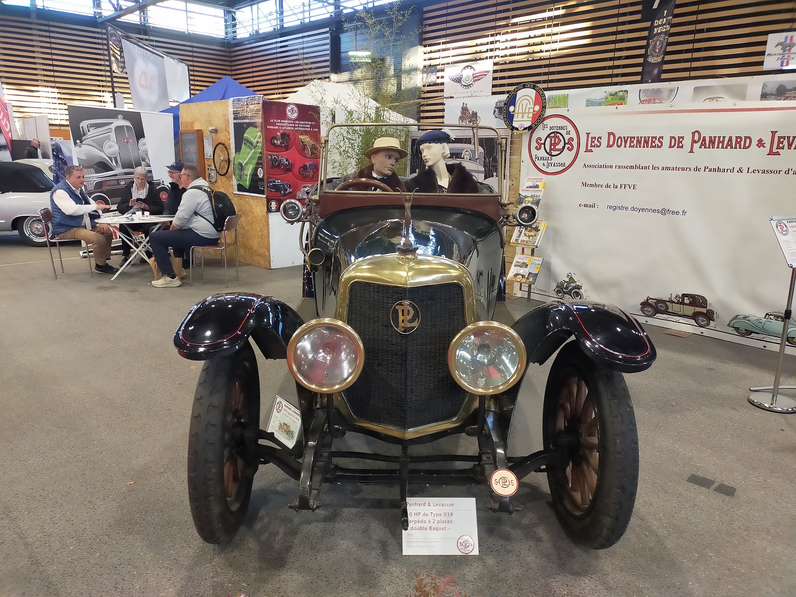 Le club des Doyennes quand à lui avait un stand juste à coté et c’est le secrétaire du club , Gilles Vayre qui présentait sa X72 tout juste sorti de restauration. Le stand a aussi bénéficié des derniers agrées commandés par le club grâce à notre ami Etienne Ramond. De belles affiches art déco, une flamme de 4 mètres de haut, une bache de 3 mètres sur deux, deux roll-up placé aux endroits stratégiques, bref il était difficile de manquer le stand !
